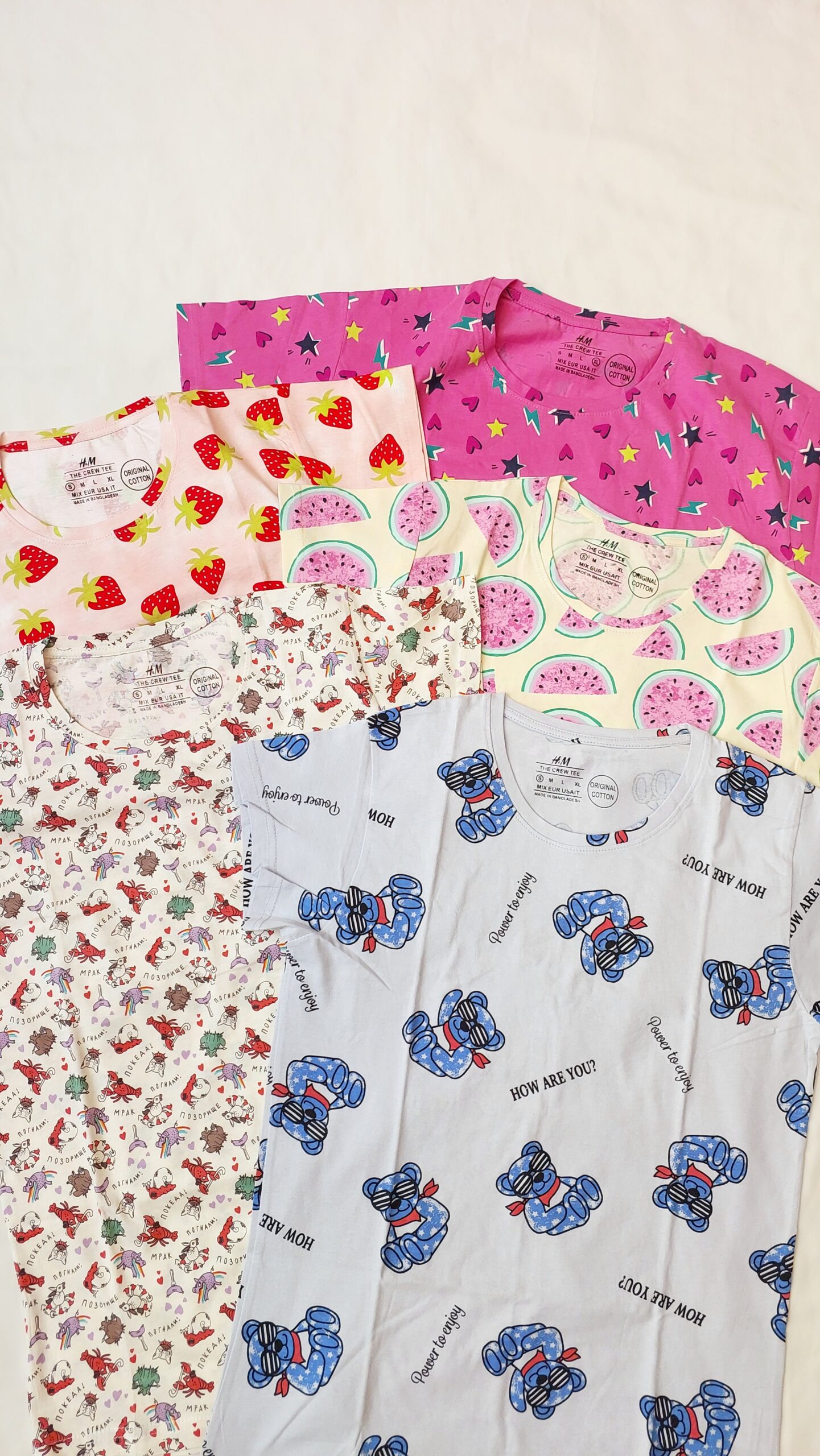 تیشرت زنانه فانتزی با طرح و رنگ های متنوع و خاص.